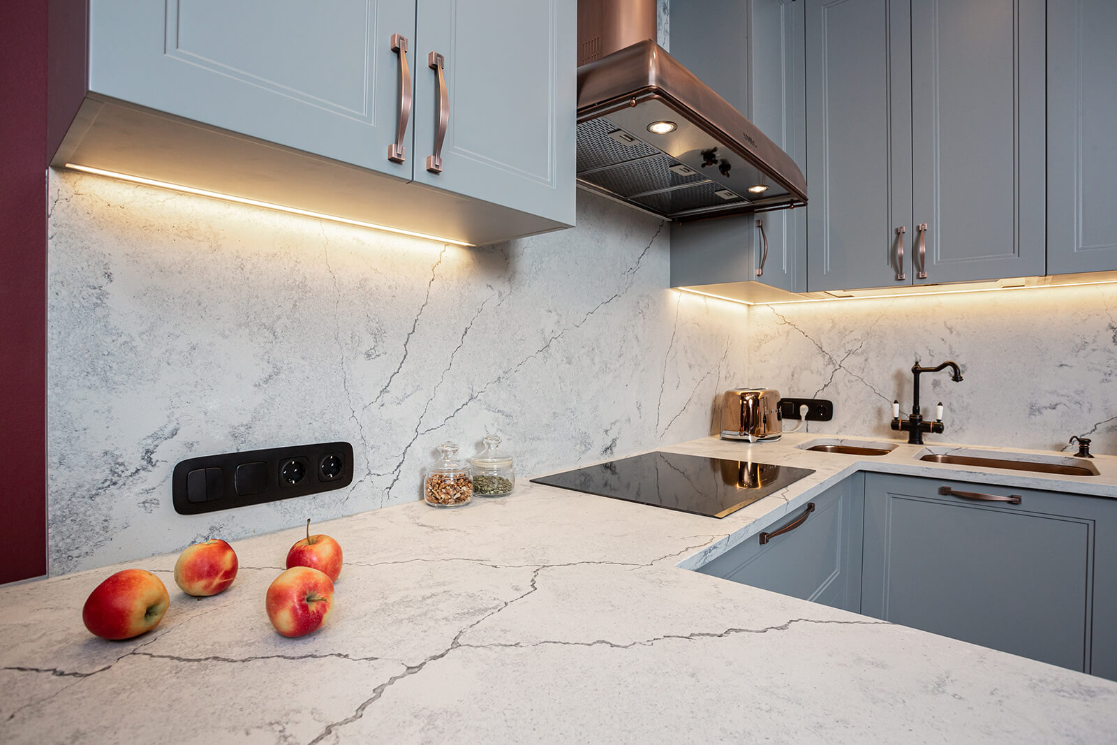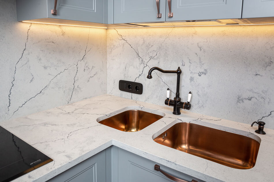 Г-образная столешница из кварцевого агломерата
