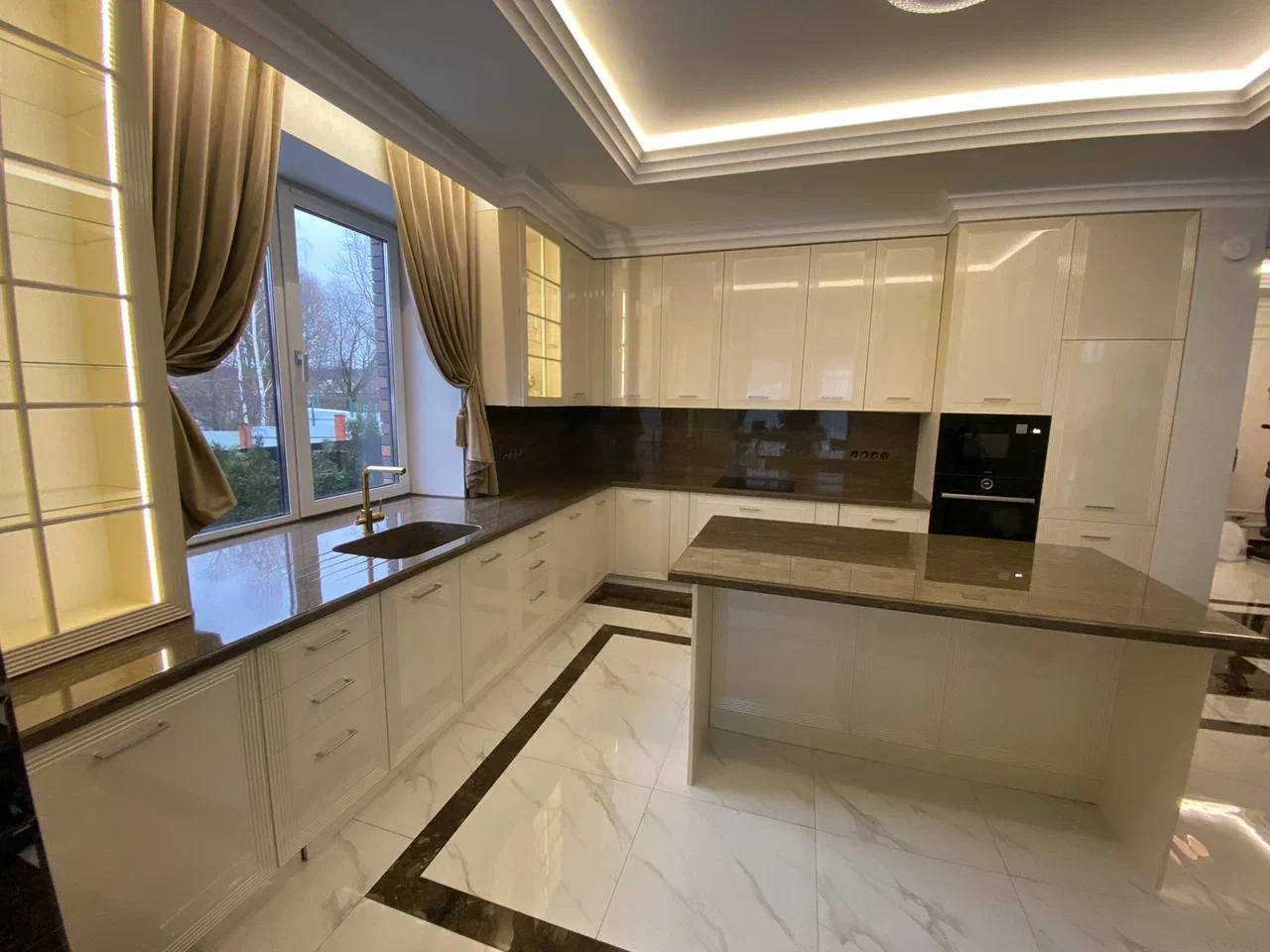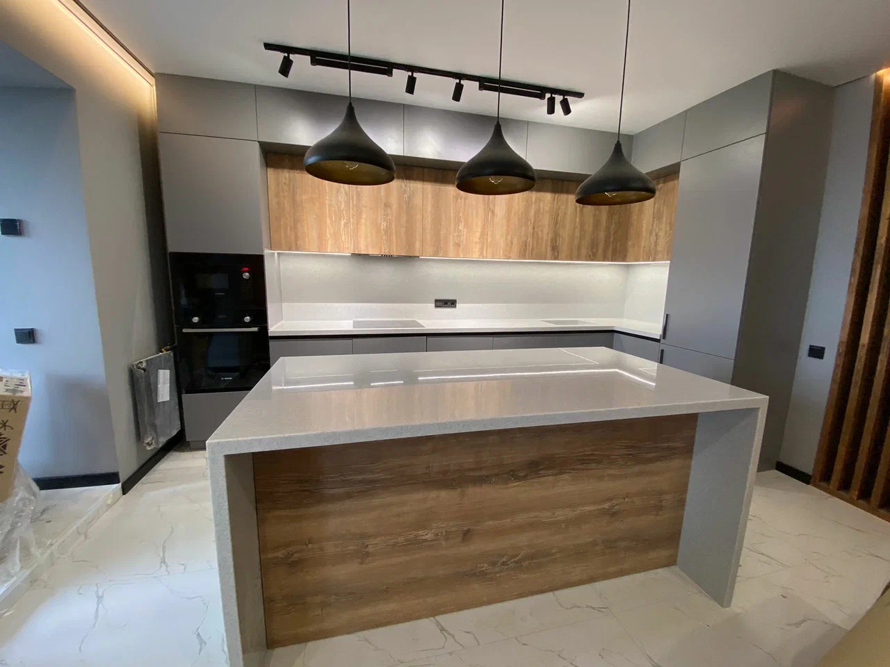 Г-образная столешница из кварцевого агломерата